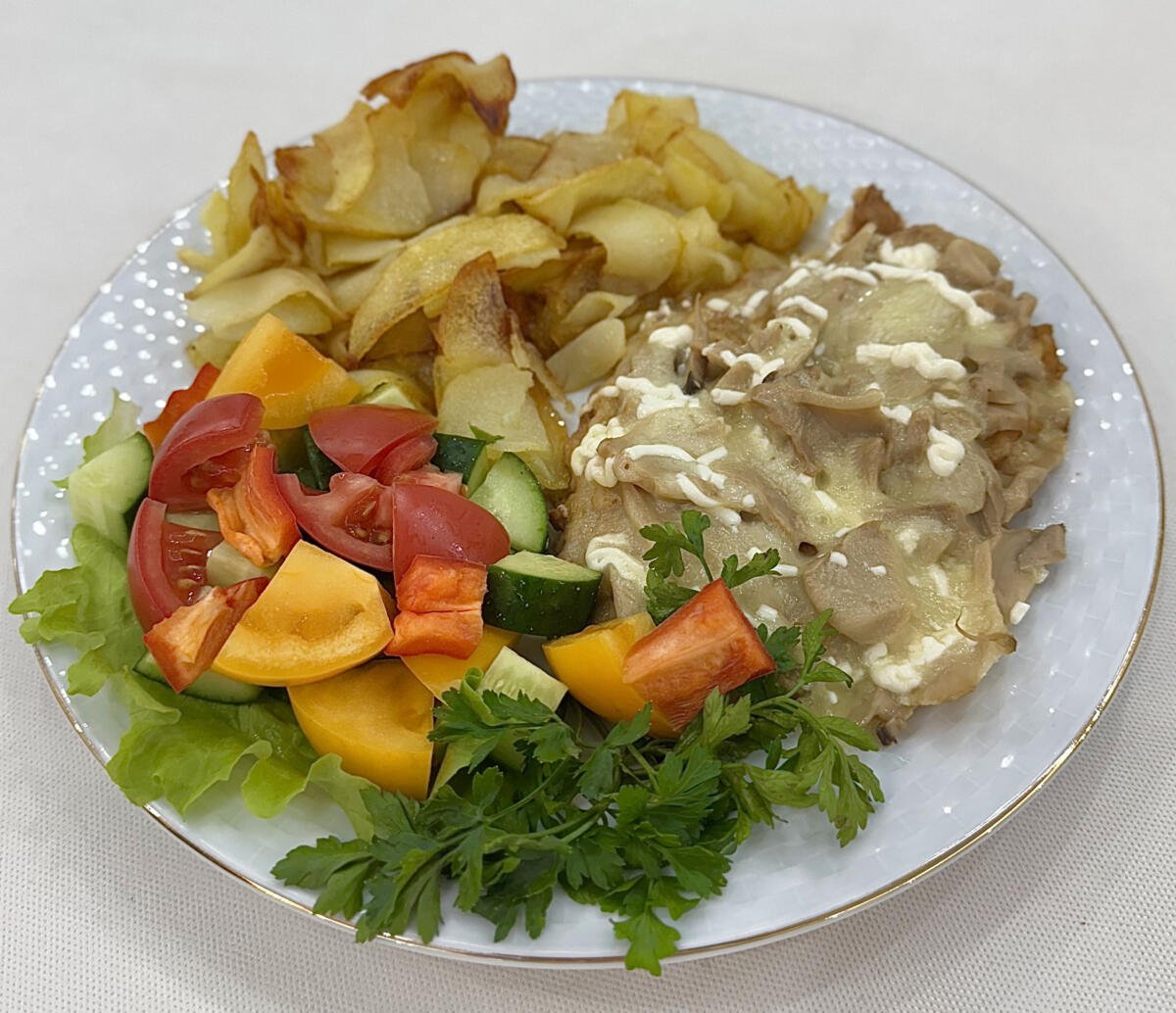 Мясо по французски с жаренной картошкой